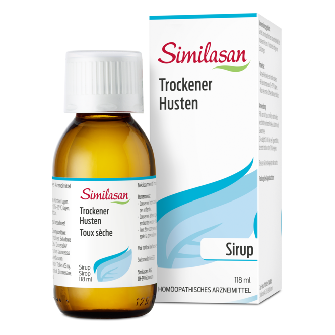Gemäss homöopathischem Arzneimittelbild kann Similasan Trockener Husten angewendet werden bei trockenem Husten und Hustenreiz infolge von Erkältungen.