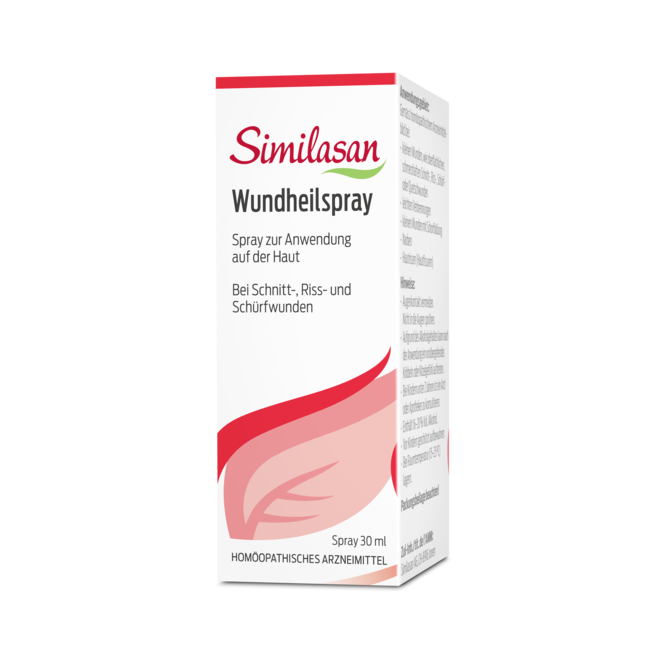 Homöopathische Arzneimittel, wie der Similasan Wundheilspray, unterstützen die Wundheilung bei Quetsch-, Schnitt-, Riss-, oder Schürfwunden sowie bei Hautrissen unterstützen. Häufig kommen dabei die homöopathischen Wirkstoffe Calendula, oder Hepar sulfuris zum Einsatz. Calendula wird mit ihrer entzündungshemmenden Wirkung bei verschiedenen Wundarten eingesetzt und Hepar sulfuris ist berühmt für die Wirkung bei Eiterungen und Entfernung von Fremdkörpern in der Haut.