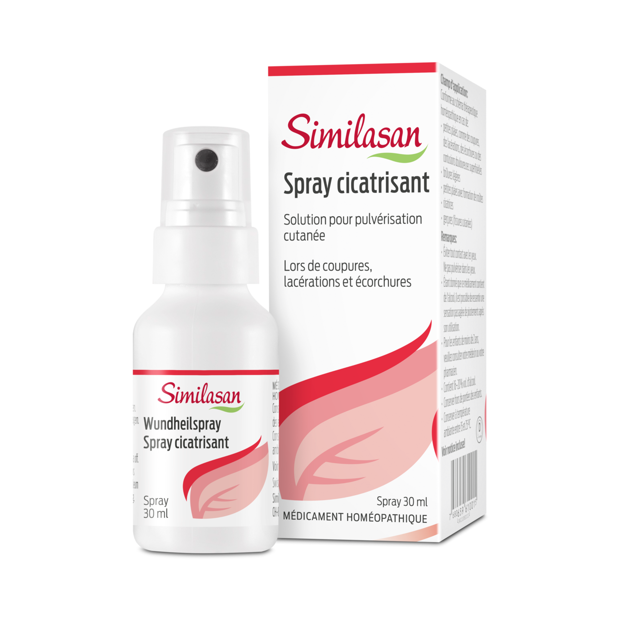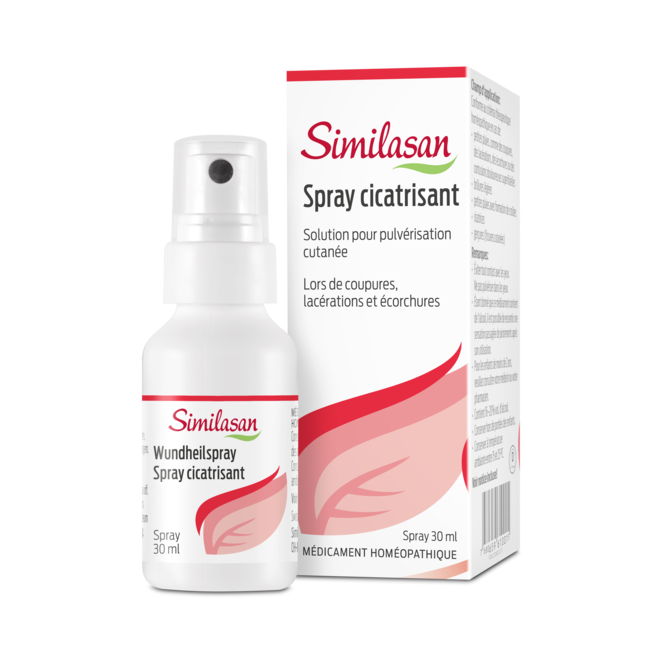 Les médicaments homéopathiques, comme le spray cicatrisant Similasan, favorisent la cicatrisation en cas de contusion, coupure, lacération, éraflure ou fissures cutanées. Les principes actifs homéopathiques Calendula, ou Hepar sulfuris sont alors souvent utilisés: Calendula pour son effet anti-inflammatoire sur différents types de plaies et Hepar sulfuris pour son action sur les suppurations et l’élimination des corps étrangers logés dans la peau.